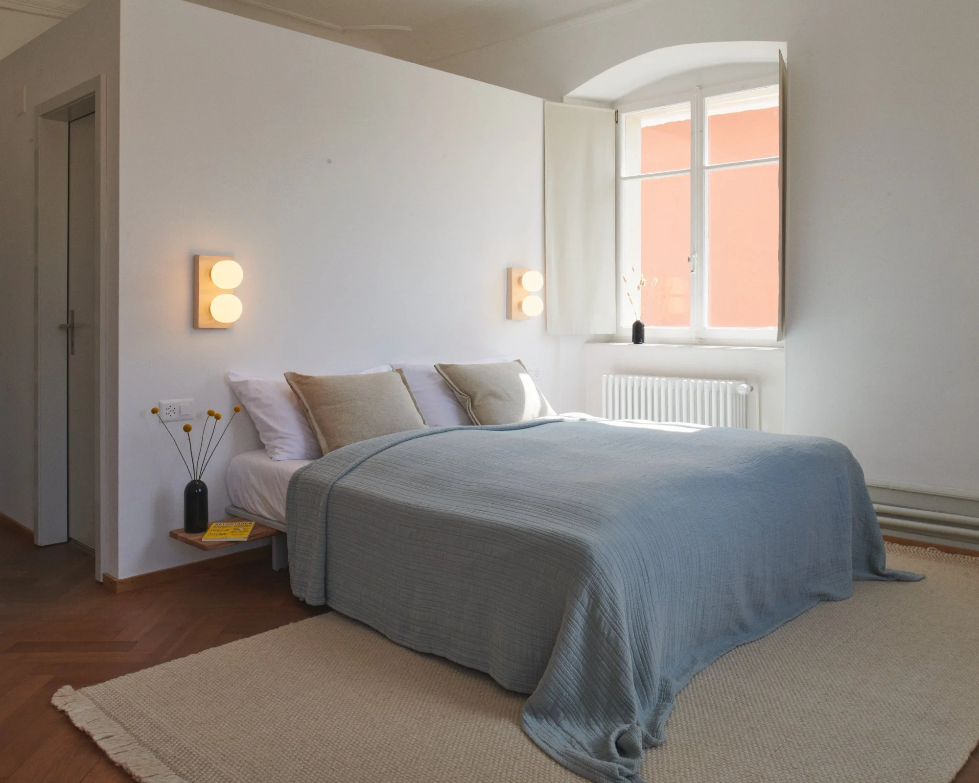 Aus dem kleinen, komfortablen Standard-Zimmer hat man einen schönen Blick auf die Altstadt. Der Raum ist ca. 15 m2 gross und verfügt über ein 160 cm breites Bett. Harmonische Farben und ausgewählte Naturmaterialien schaffen eine cozy Atmosphäre. Modernes Bad mit Dusche und Schweizer Naturpflege von Söder.